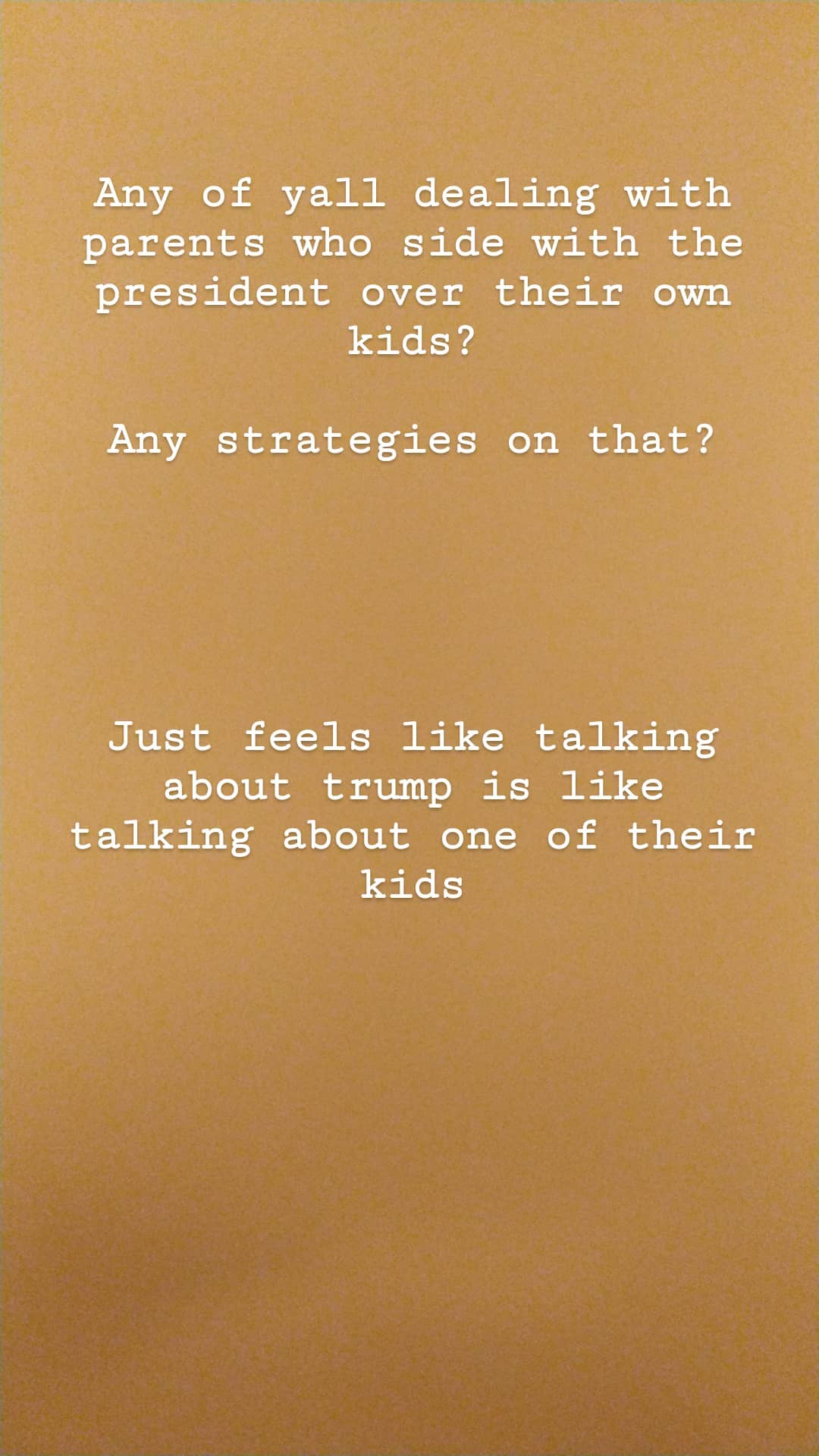 Any strategies on that? Just feels like talking about trump is like talking about one of their kids